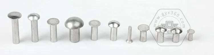 由于鋁具有相對較軟的特性,常溫下壓縮拉伸性能好,因此實心壓鉚鉚釘也常使用鋁或鋁合金制造,實心鉚釘常用材質有鋁制鉚釘可直接常溫進行鉚接作業而不必如鋼制鉚釘需進行提前預熱軟化工作,可用于非結構件或負載較小的結構件連接。實心鉚釘廣泛的應用于刀具、文具賬冊、鎖具、頭盔汽車五金箱包、童車、汽車離合器鋼片、摩托車零配件以及家用電器等。