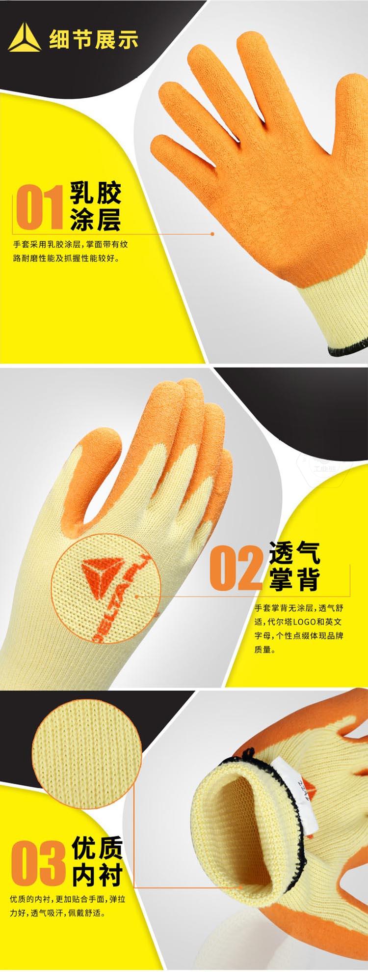 商品名稱:代爾塔 勞保手套 工作手套 透氣 乳膠涂層防撕裂 9# 201730 橙色 L號(一副)