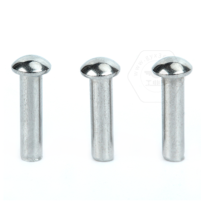 • 產品描述:GB867 半圓頭鉚釘,又叫實心鉚釘、圓帽鉚釘、敲擊鉚釘、半圓頭實心鉚釘、蘑菇頭實心螺栓、圓帽敲擊式鉚釘、半圓頭鉚釘、手敲實心鉚釘、敲擊式圓頭鉚釘。鉚釘是用于將事先制有釘孔的兩個結構件鉚接在一起的一類緊固件。GB867 半圓頭鉚釘主要用于承受較大橫向載荷的鉚接場合,應用最廣。標準規格范圍從0.6~16mm,材料有碳素鋼、不銹鋼、銅及其合金、鋁及其合金。GB867 半圓頭鉚釘具有強度高、精度高、不易