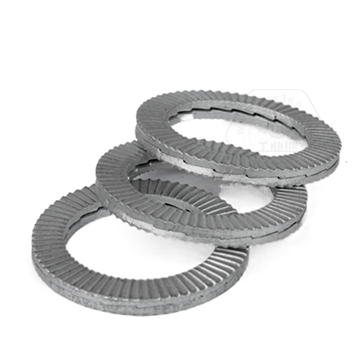 • 產(chǎn)品描述:DIN25201SPS 雙疊自鎖墊圈,也叫碳鋼加大防松鎖緊墊圈、愜入式鎖緊墊圈、雙疊自鎖墊圈抗振防松動墊圈、自動鎖緊功能墊圈、安全鎖緊墊圈、雙層防松墊片、減震墊圈、對鎖墊圈、楔齒墊圈。DIN25201SPS 雙疊自鎖墊圈由二片不同斜紋墊圈組成,組裝時內(nèi)斜齒面相對,外側放射狀齒面與兩端接觸面形成咬合狀態(tài),當連接件受到振動并產(chǎn)生螺栓松動隱患時,只允許兩個墊片內(nèi)側的斜齒相對錯動,導致張力升高,從而防止松